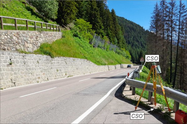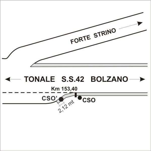| Contrassegni | [{"simbolo_contrassegno":"B1","materializzazione":"(CSO) – Bullone infisso nel cordolo in cemento armato del guard-rail posto a valle della strada e a sinistra del segnale ettometrico."},{"simbolo_contrassegno":"B4","materializzazione":"(CSO') – centrino in acciaio inox del tipo universale infisso sulla sommit\u00e0 del cordolo in cemento armato del guard rail lato valle a circa 2 m dall'estremit\u00e0 del cordolo."}] |