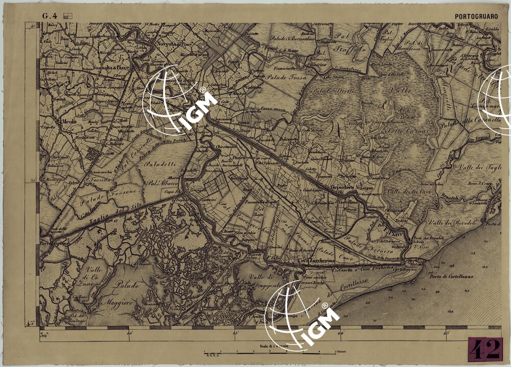 Ingrandimento meccanico al 50.000 delle carte alla scala di 1:86.400 pubblicate dall’I.G.M. Austriaco. Lavoro ordinato dal Comando dello S.M. Italiano e lasciato interotto.