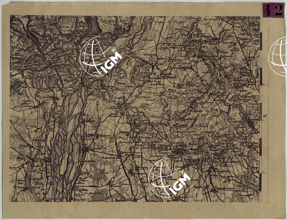 Ingrandimento meccanico al 50.000 delle carte alla scala di 1:86.400 pubblicate dall'I.G.M. Austriaco. Lavoro ordinato dal Comando dello S.M. Italiano e lasciato interotto.