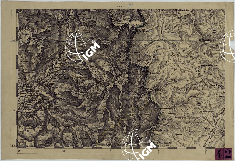 Ingrandimento meccanico al 50.000 delle carte alla scala di 1:86.400 pubblicate dall’I.G.M. Austriaco. Lavoro ordinato dal Comando dello S.M. Italiano e lasciato interotto.