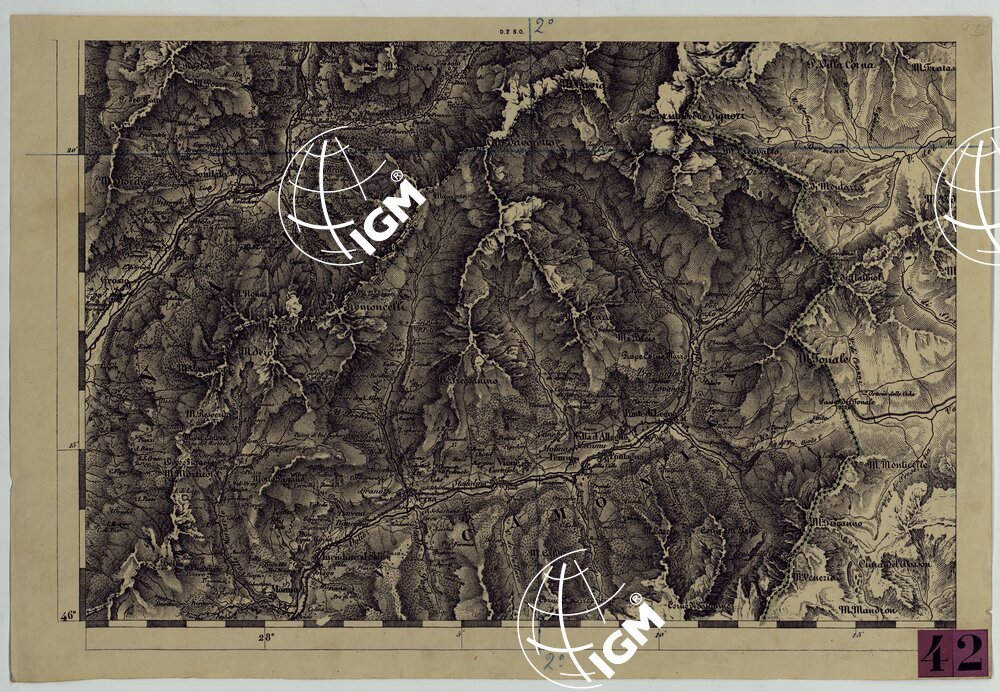 Ingrandimento meccanico al 50.000 delle carte alla scala di 1:86.400 pubblicate dall’Istituo Geografico Militare Austriaco. Lavoro ordinato dal Comando dello S.M. Italiano e lasciato interotto.