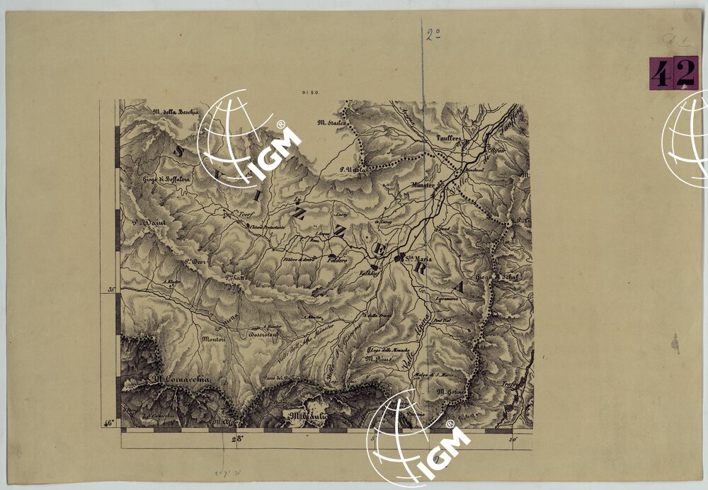 Ingrandimento meccanico al 50.000 delle carte alla scala di 1:86.400 pubblicate dall’Istituo Geografico Militare Austriaco. Lavoro ordinato dal Comando dello S.M. Italiano e lasciato interotto.