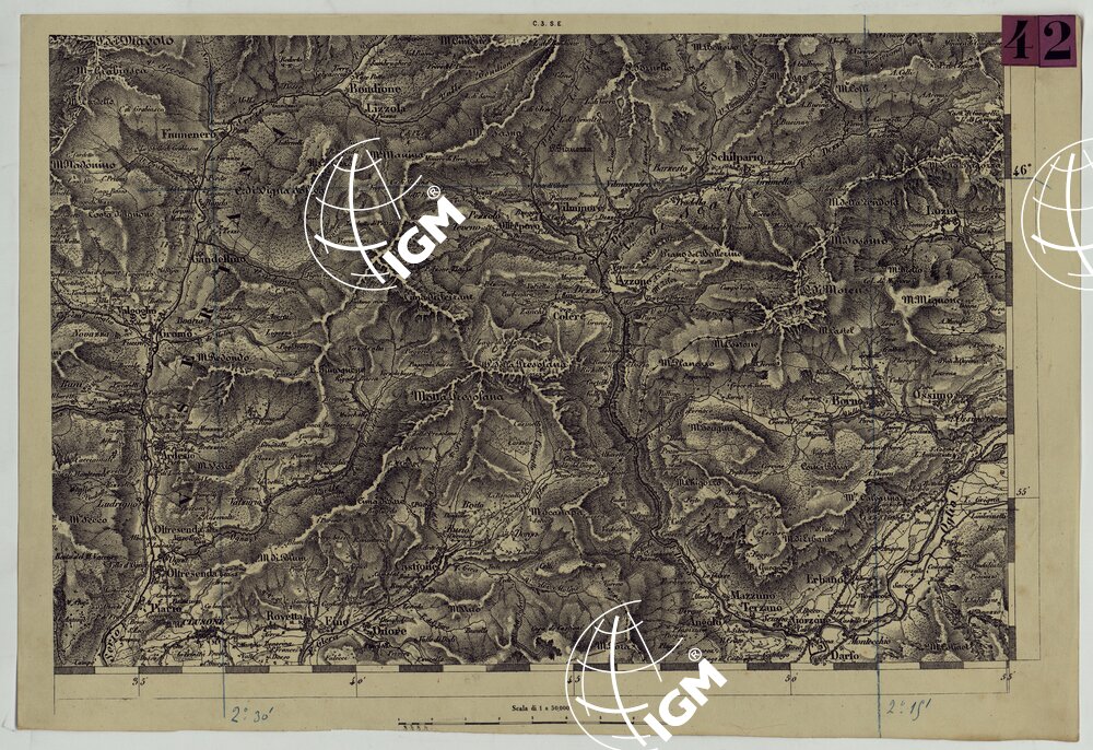 Ingrandimento meccanico al 50.000 delle carte alla scala di 1:86.400 pubblicate dall’I.G.M. Austriaco. Lavoro ordinato dal Comando dello S.M. Italiano e lasciato interotto.