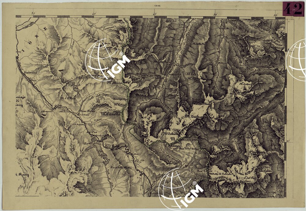 Ingrandimento meccanico al 50.000 delle carte alla scala di 1:86.400 pubblicate dall’I.G.M. Austriaco. Lavoro ordinato dal Comando dello S.M. Italiano e lasciato interotto.