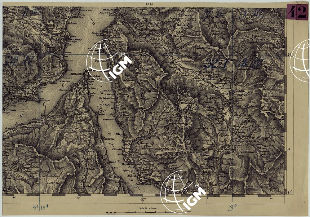 Ingrandimento meccanico al 50.000 delle carte alla scala di 1:86.400 pubblicate dall’I.G.M. Austriaco. Lavoro ordinato dal Comando dello S.M. Italiano e lasciato interrotto.