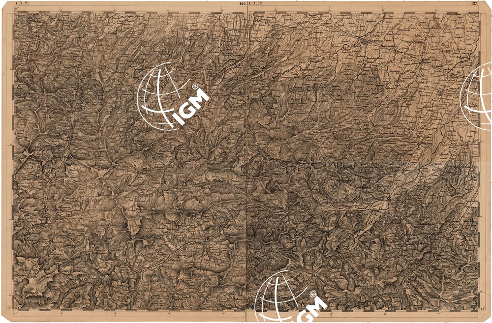 Ingrandimento meccanico al 50.000 delle carte alla scala di 1:86.400 pubblicate dall’I.G.M. Austriaco. Lavoro ordinato dal Comando dello S.M. Italiano e lasciato interotto.