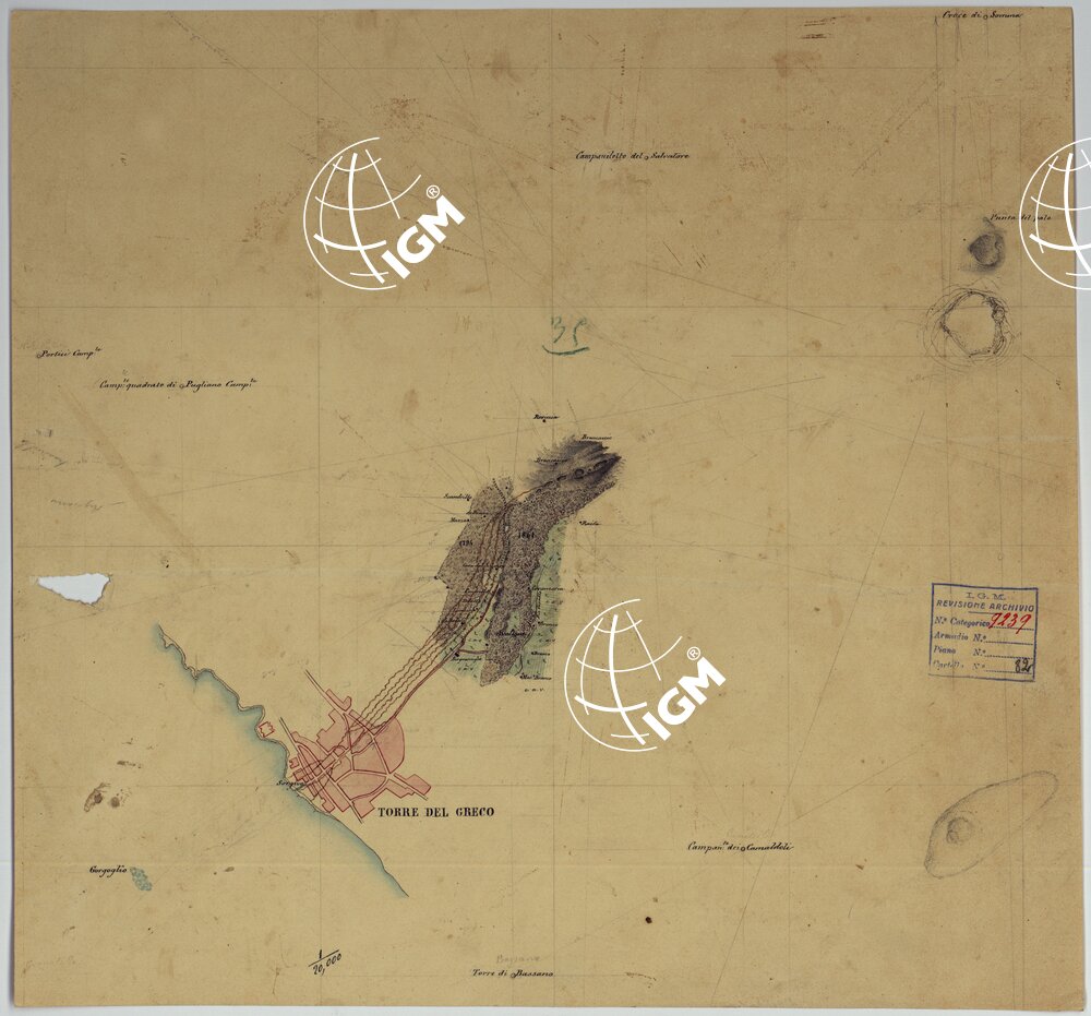 Docum. n. 71. Rilievo eseguito per dimostrare le lave eruttate dal Vesuvio nel 1794 e 1861.