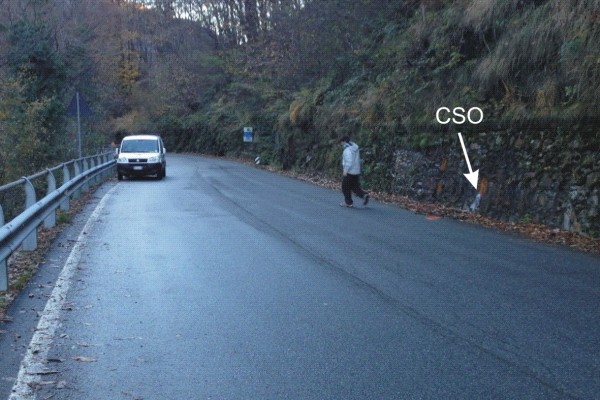 | Contrassegni | [{"simbolo_contrassegno":"B1","materializzazione":"(CSO) – Bullone infisso sul muro in pietra posto sul lato destro della strada, direzione Cannobio."}] |
