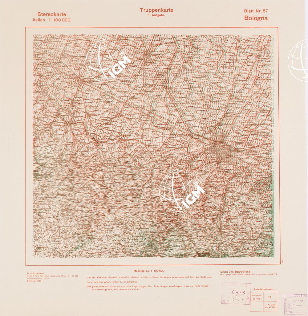 Rappresentazione orografica a curve di livello. Grafia italiana tedesca. I.G.M. (FI).
