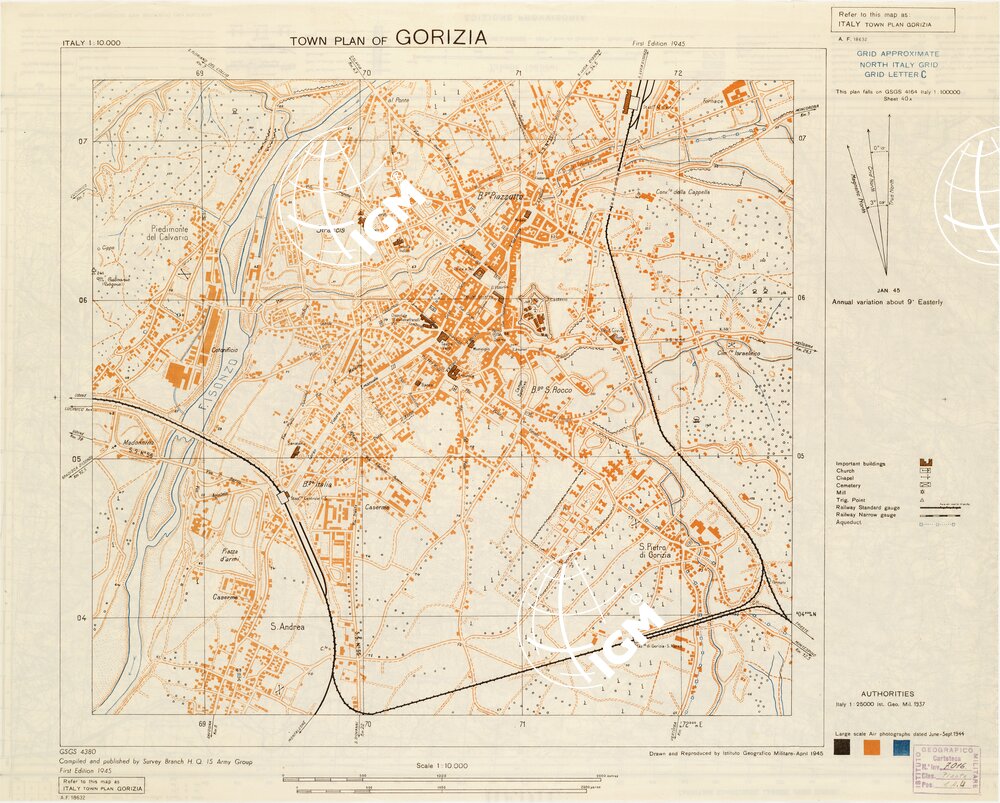 Rappresentazione orografica planimetrica. Grafia inglese. Carta pubblicata da Survey Branch H. Q. 15 Army Group e riprodotta da I.G.M. (FI).