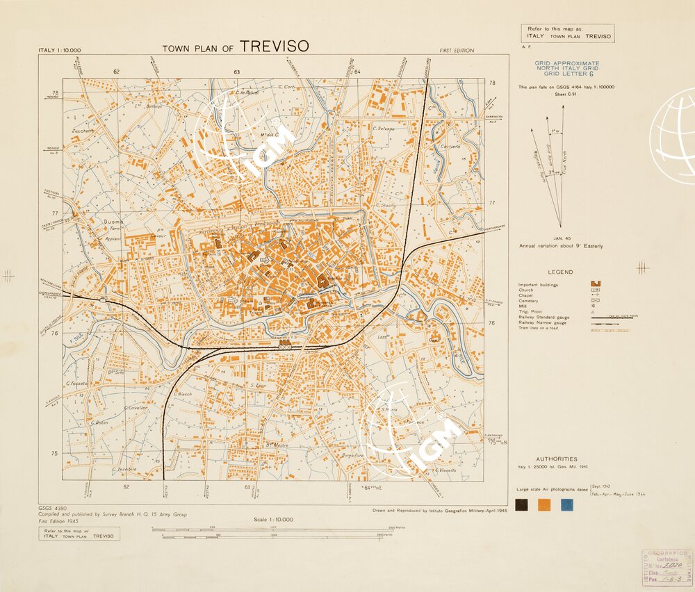 Rappresentazione orografica planimetrica. A sinistra è presente la legenda dei segni convenzionali. Survey Branch H. Q. 15 Army Group. I.G.M. (FI).