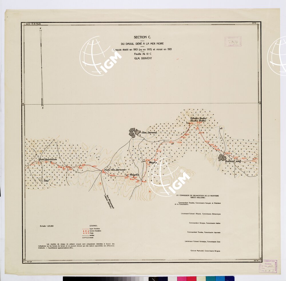 Autore Commissione Confini. Rappresentazione orografica a curve di livello. Editore Imprimerie D’ Etat – Luogo di edizione Sofia. Grafia francese locale. Tipologia policroma.