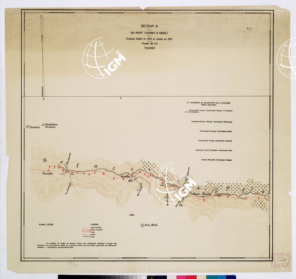 Autore Commissione Confini. Rappresentazione orografica a curve di livello. Editore Imprimerie D’ Etat – Luogo di edizione Sofia. Grafia francese locale. Tipologia policroma.