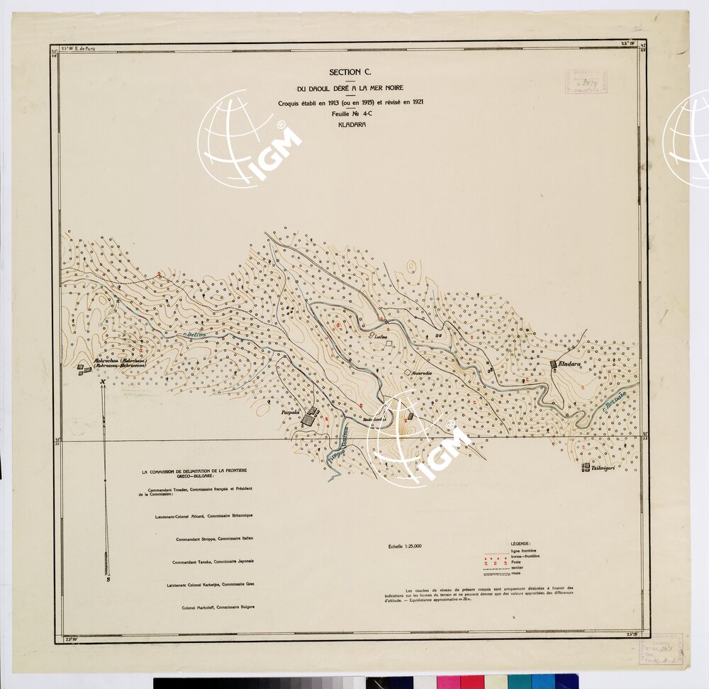 Autore Commissione Confini. Rappresentazione orografica a curve di livello. Editore Imprimerie D’ Etat – Luogo di edizione Sofia. Grafia francese locale. Tipologia policroma.