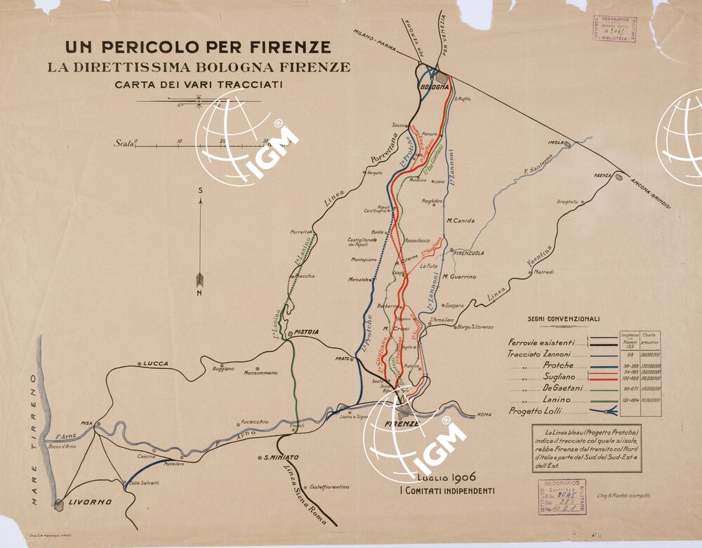 La linea bleau (Progetto Protche) indica il tracciato col quale si isolerebbe Firenze dal transito col Nord d’Italia e parte del Sud, del Sud-Est e dell’Est. Rappresentazione orografica planimetrica.