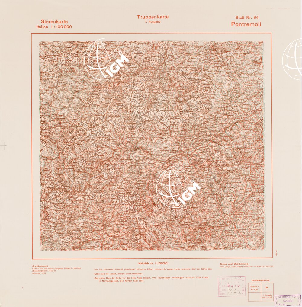 Rappresentazione orografica a curve di livello. Grafia italiana tedesca. I.G.M. (FI).