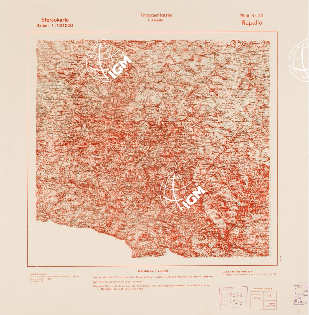 Rappresentazione orografica a curve di livello. Grafia italiana tedesca. I.G.M. (FI).