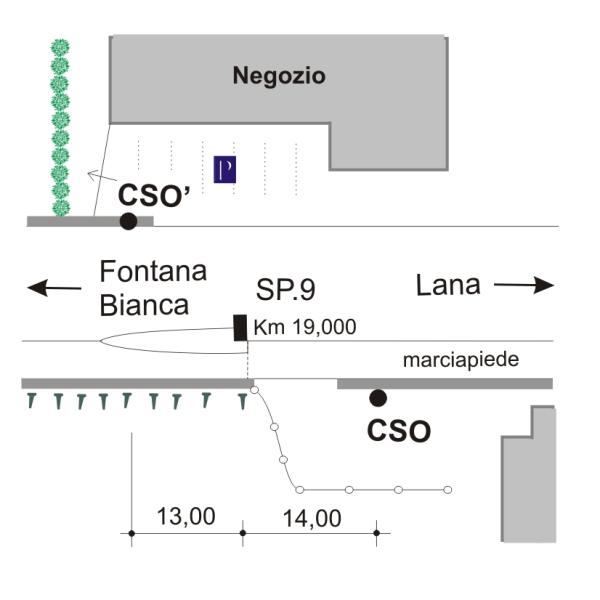 | Contrassegni | [{"simbolo_contrassegno":"B1","materializzazione":"(CSO) – Bullone infisso nel cordolo del marciapiede a valle, d'accesso ad una casa."},{"simbolo_contrassegno":"B4","materializzazione":"(CSO') – Centrino universale infisso sul muro in cemento armato, di fronte al negozio. Il punto \u00e8 coincidente con il vertice IGM95 n.010719."}] |