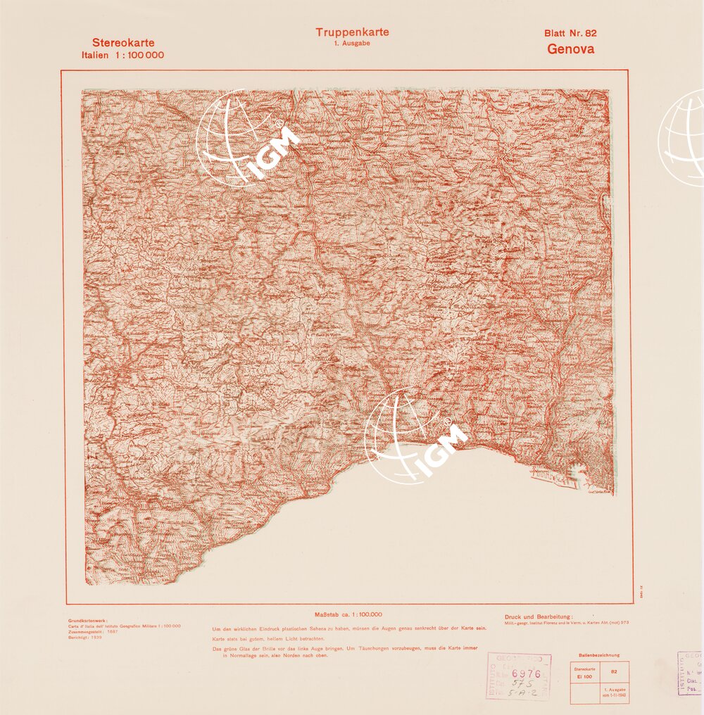 Rappresentazione orografica a curve di livello. Grafia italiana tedesca. I.G.M. (FI).