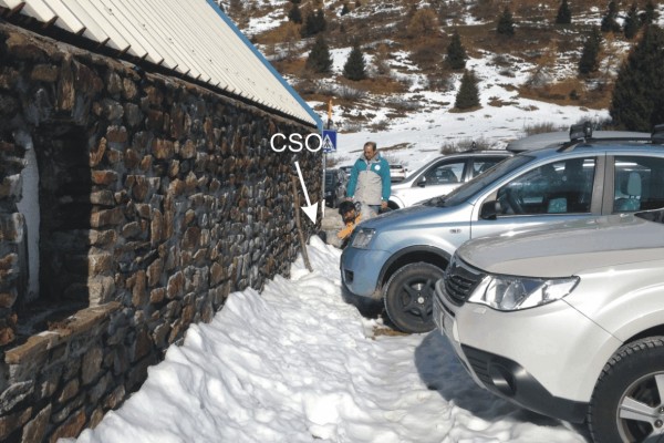 [{"simbolo_contrassegno":"B1","materializzazione":"(CSO) – Bullone infisso alla base del muro in pietra adiacente la biglietteria."}]