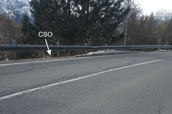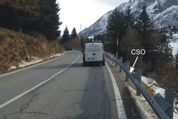 [{"simbolo_contrassegno":"B1","materializzazione":"(CSO) – Bullone infisso alla base del cordolo in calcestruzzo di ancoraggio del guard-rail."}]