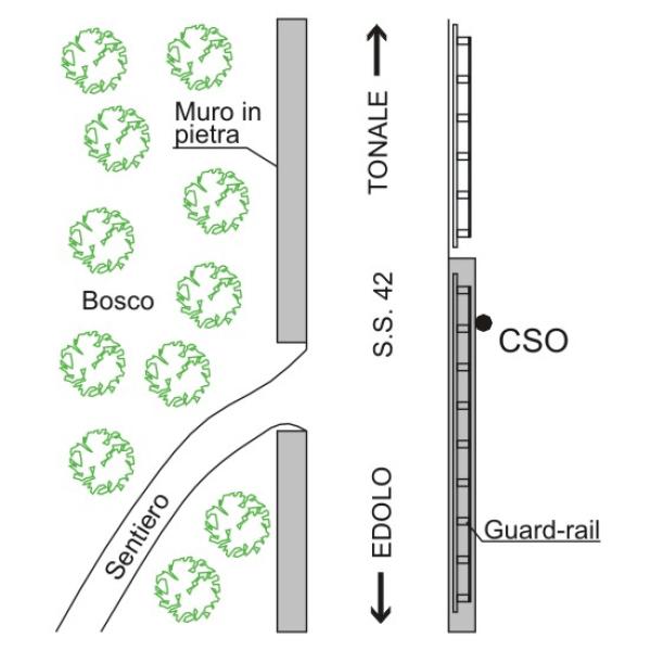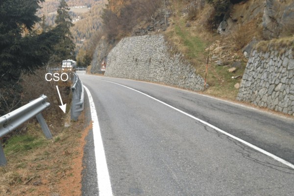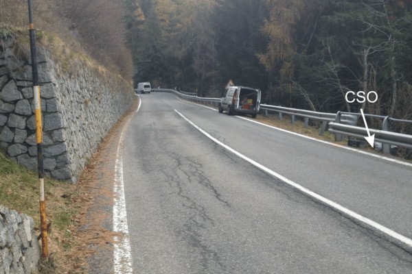 [{"simbolo_contrassegno":"B1","materializzazione":"(CSO) – Bullone infisso all'inizio del cordolo in calcestruzzo di ancoraggio del guard-rail, direzione Tonale."}]