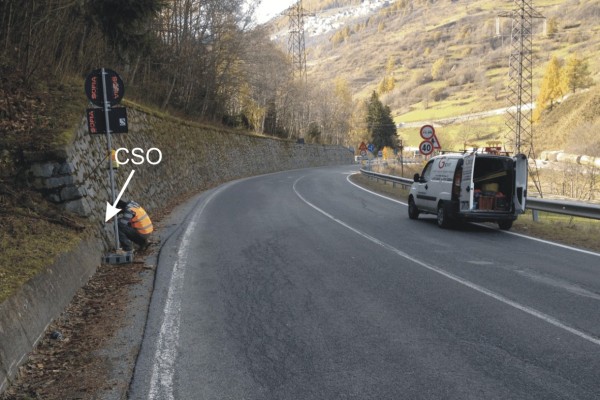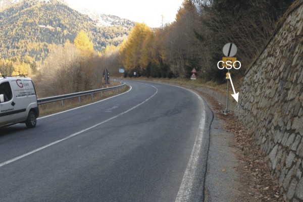 [{"simbolo_contrassegno":"B1","materializzazione":"(CSO) – Bullone infisso sul muro di contenimento in pietra, in prossimit\u00e0 della fine dello stesso e l'inizio di un cordolo in calcestruzzo."}]