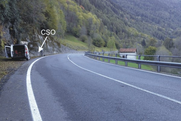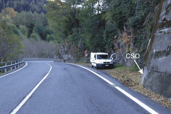 | Contrassegni | [{"simbolo_contrassegno":"B1","materializzazione":"(CSO) – Bullone infisso su un grosso muro di contenimento in calcestruzzo, nei pressi di una piegatura."}] |
