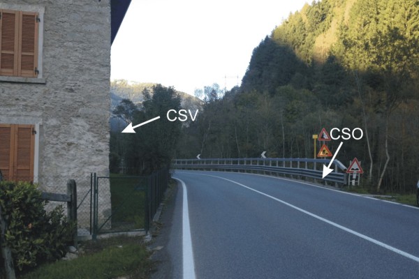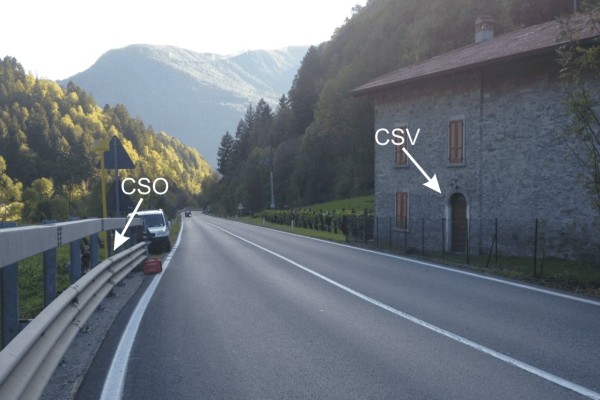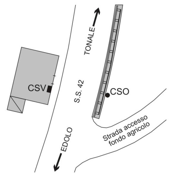 | Contrassegni | [{"simbolo_contrassegno":"B1","materializzazione":"(CSO) – Bullone infisso su un muro in calcestruzzo antistante il fabbricato su cui \u00e8 ospitato il CSV."},{"simbolo_contrassegno":"V1","materializzazione":"(CSV) – Mensola infissa sulla facciata, spigolo di sinistra, antistante il muro in calcestruzzo che ospita il CSO."}] |