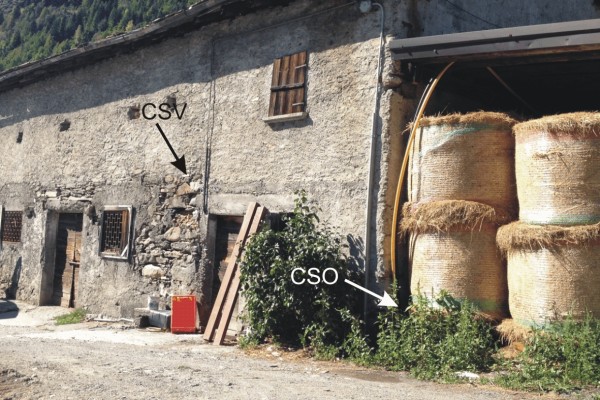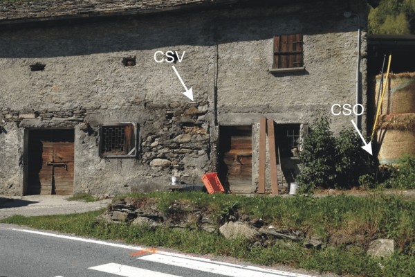 [{"simbolo_contrassegno":"P3","materializzazione":"(CSO) – Chiusino posto alla base della parete laterale a circa 1.60 mt dallo spigolo sud-est."},{"simbolo_contrassegno":"V1","materializzazione":"(CSV) – Mensola infissa sulla facciata a circa 4.50 mt dallo spigolo sud-est."}]