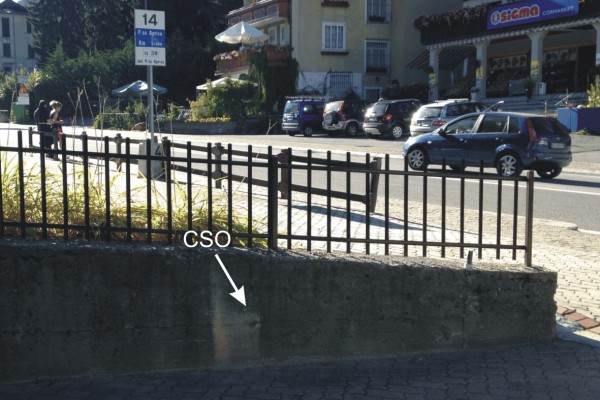| Contrassegni | [{"simbolo_contrassegno":"B1","materializzazione":"(CSO) – Bullone infisso sul muretto di una rampa di accesso ai garage dei civici n. 549-555 su via nazionale."}] |
