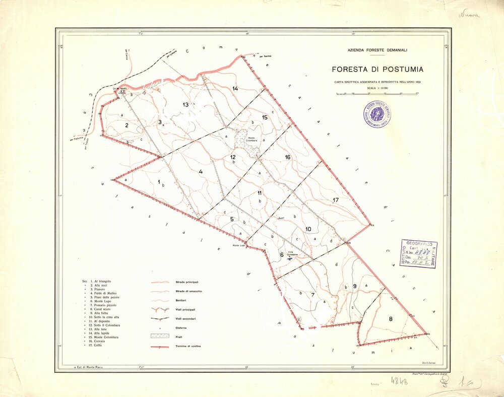 Carta sinottica aggiornata e riprodotta nell’anno 1922. Rappresentazione orografica planimetrica. In basso a sinistra l’elenco delle sezioni e delle strade. Disegnatore E. Daresi; premiato stabilimento cartografico G. Giardi.