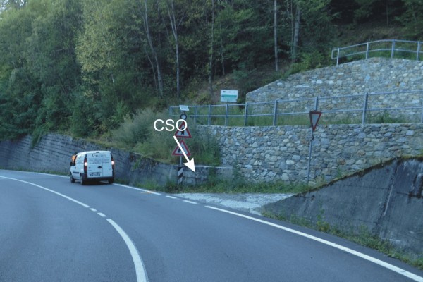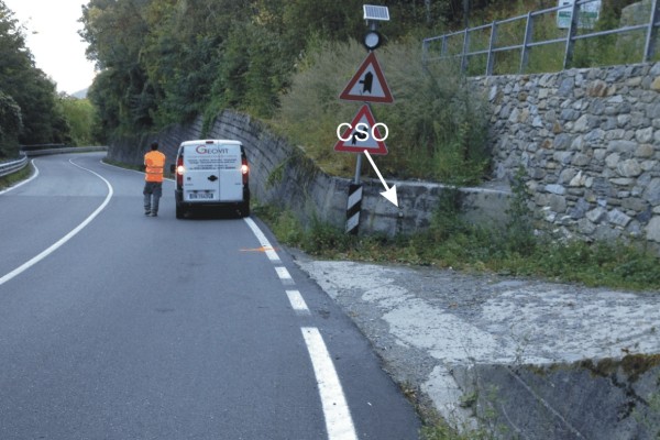| Contrassegni | [{"simbolo_contrassegno":"B1","materializzazione":"(CSO) – Bullone infisso sul muro in calcestruzzo che delimita il bivio tra la SS 39 e una stradina in pietra."}] |
