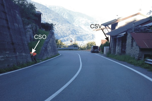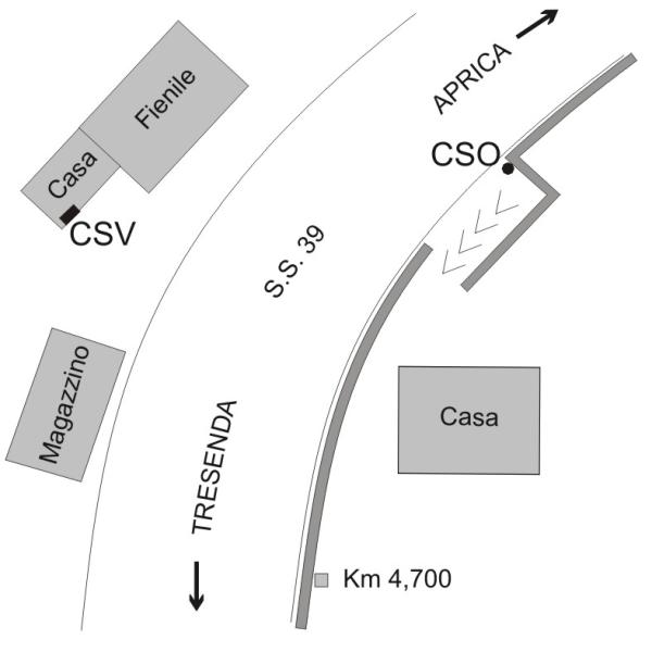 [{"simbolo_contrassegno":"B1","materializzazione":"(CSO) – Bullone infisso sul muro in calcestruzzo della scaletta di accesso al fabbricato."},{"simbolo_contrassegno":"V1","materializzazione":"(CSV) – Mensola infissa sulla facciata del fabbricato, tra la porta del fienile e la Madonnina"}]