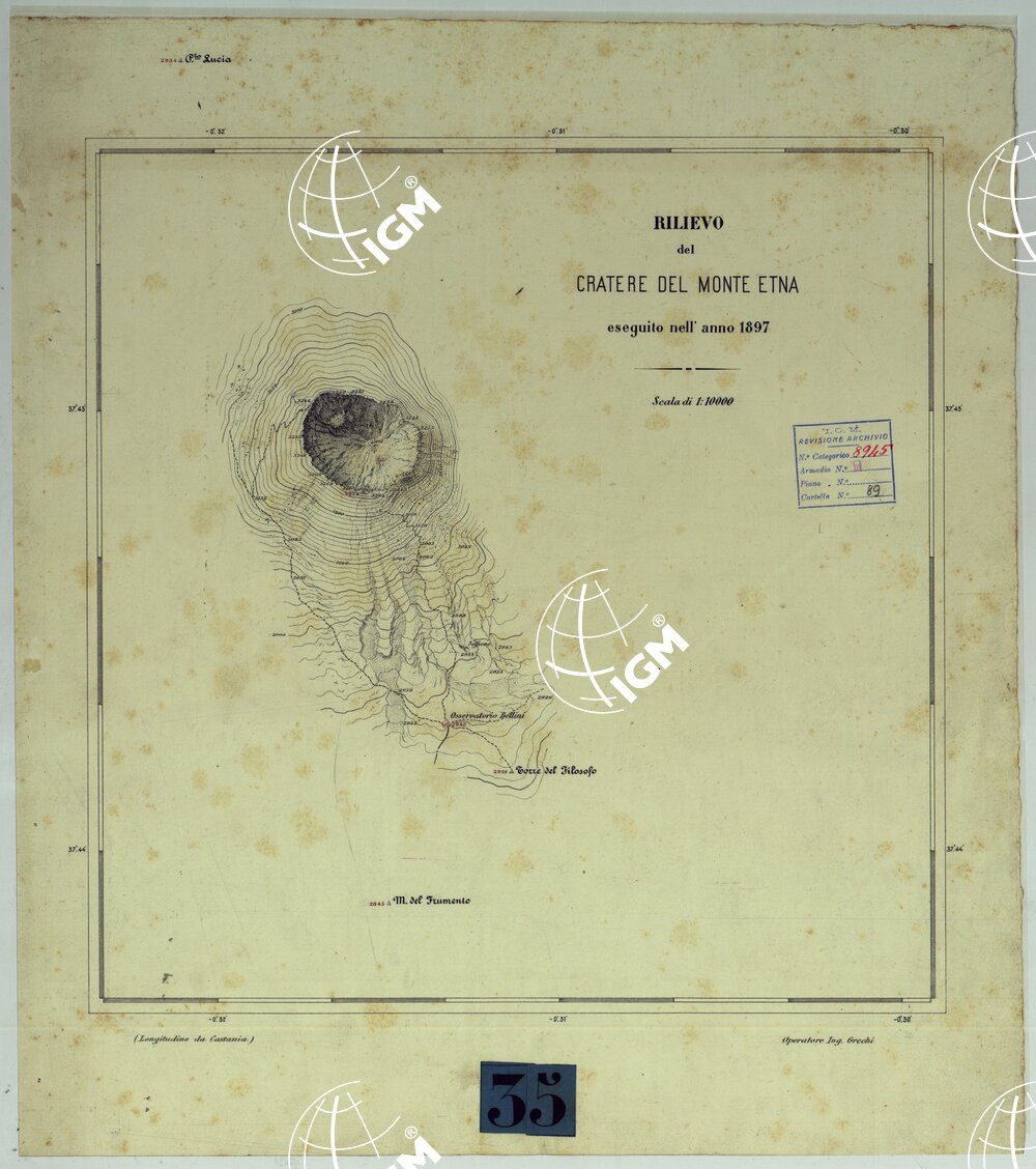 | Titolo proprio | RILIEVO DEL CRATERE DEL MONTE ETNA ESEGUITO NELL'ANNO 1897 + RELAZIONE SUL RILIEVO. |