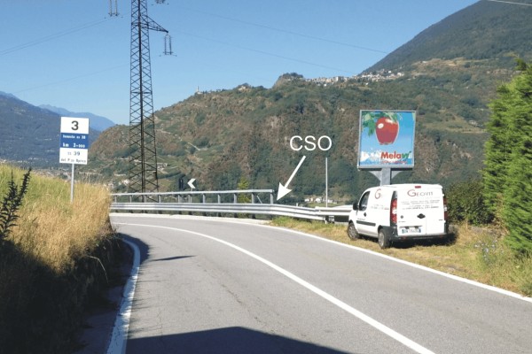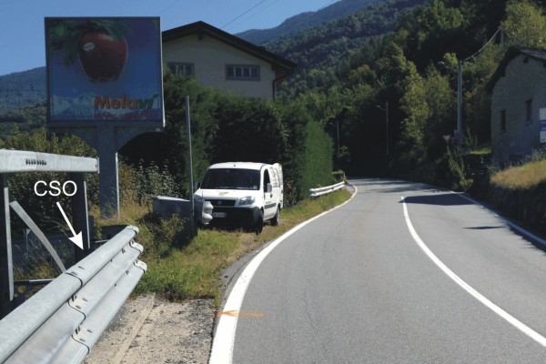 | Contrassegni | [{"simbolo_contrassegno":"B1","materializzazione":"(CSO) – Bullone infisso sul muro di contenimento, della sede stradale con guard rail, lato valle."}] |
