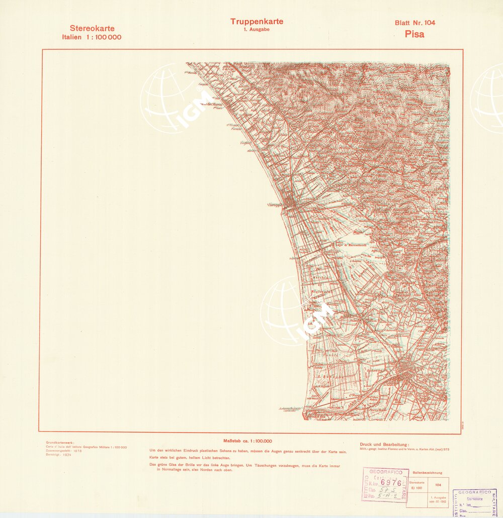 Rappresentazione orografica a curve di livello. Grafia italiana tedesca. I.G.M. (FI).