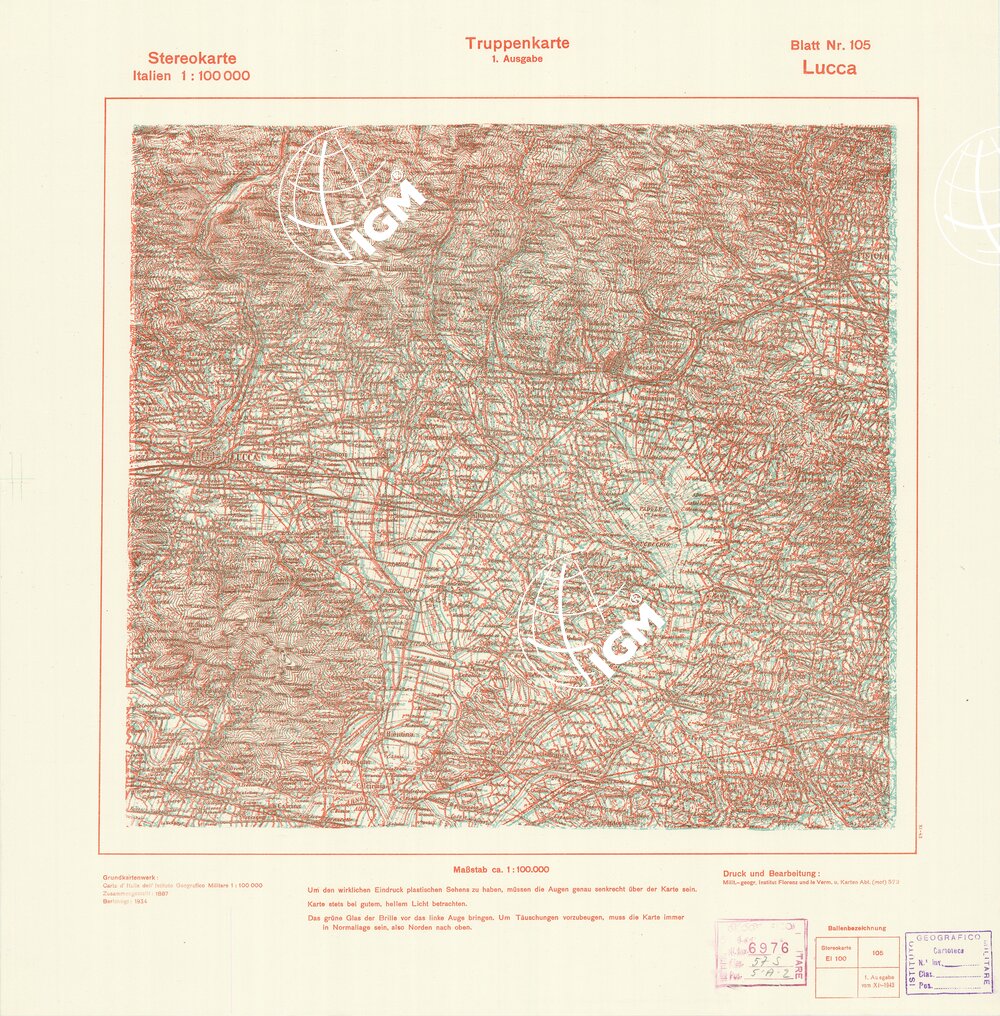 Rappresentazione orografica a curve di livello. Grafia italiana tedesca. I.G.M. (FI).