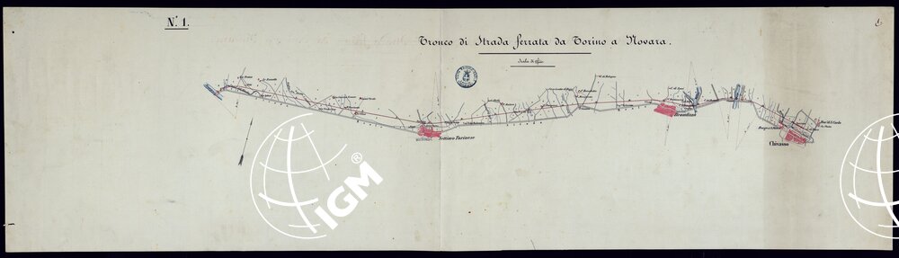 Planimetrie di vari tronchi di ferrovia. Epoca 1851-1871. Disegni ad acquerello impiegati probabilmente per la carta generale degli Stati Sardi al 50.000.