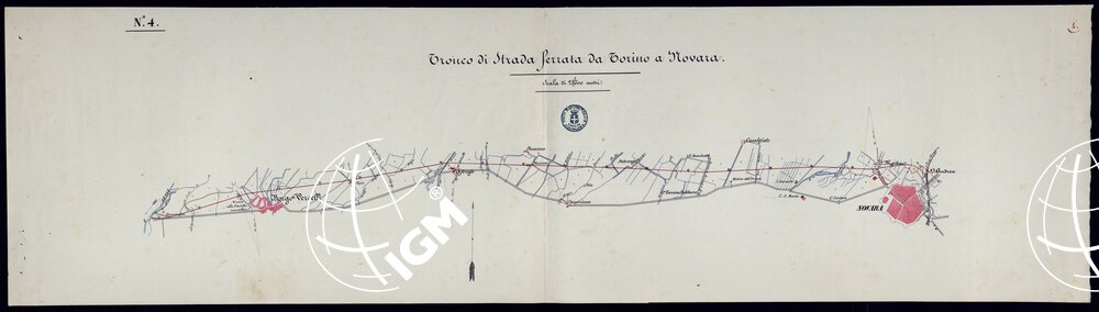 Planimetrie di vari tronchi di ferrovia. Epoca 1851-1871. Disegni ad acquerello impiegati probabilmente per la carta generale degli Stati Sardi al 50.000.