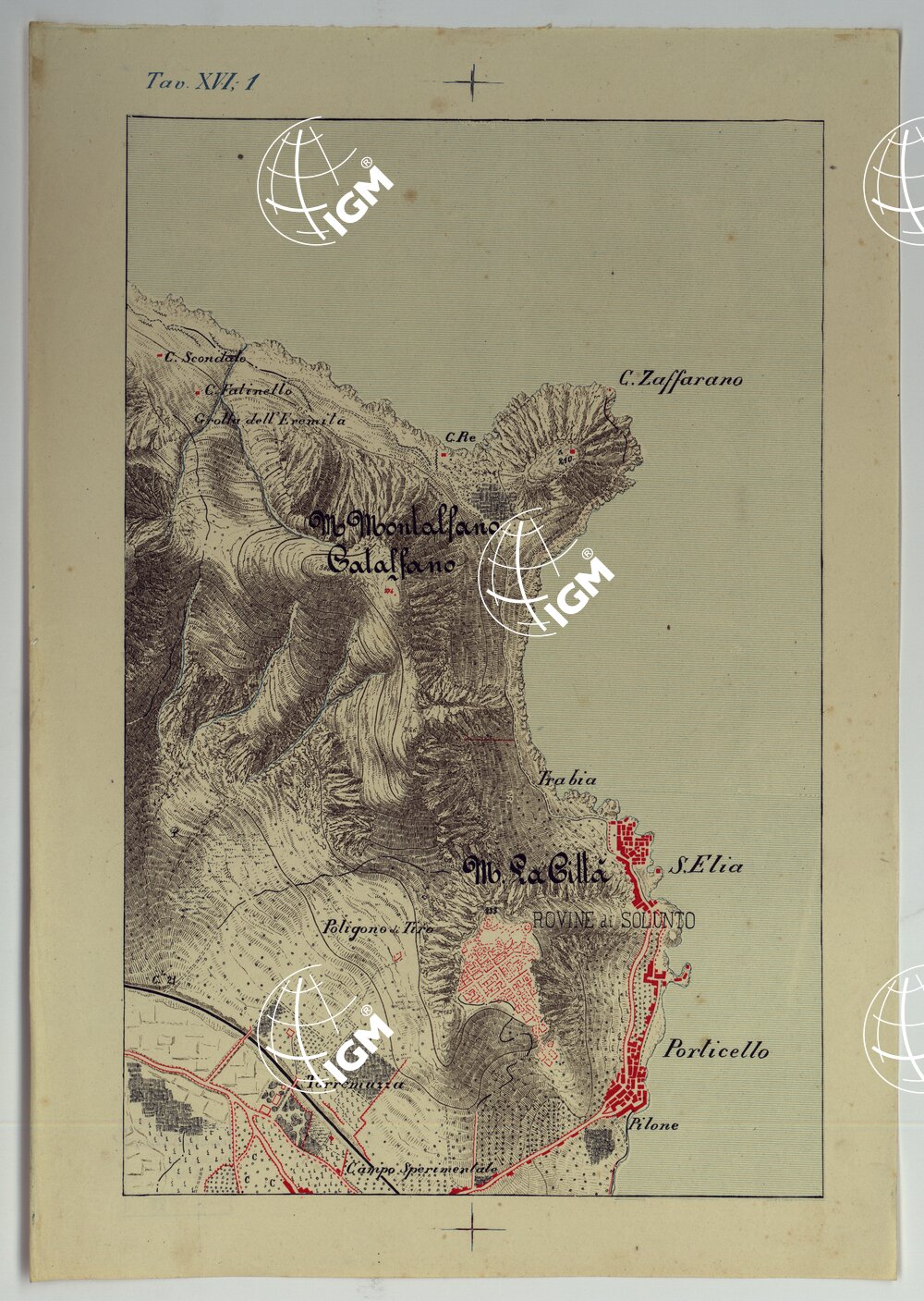 CARTA DEI DINTORNI DI PALERMO ALLA SCALA DI 1 A 10.000 PER LEMANOVRE SULLA CARTA ESEGUITA MEDIANTE INGRANDIMENTO GEOMETRICO DELLA CARTA AL 50.000, RIVEDUTA E COMPLETATA IN OGNI PARTE SUL TERRENO, CON STRUMENTI PER LEVATE SPEDITIVE – TAVOLA XVI 1.