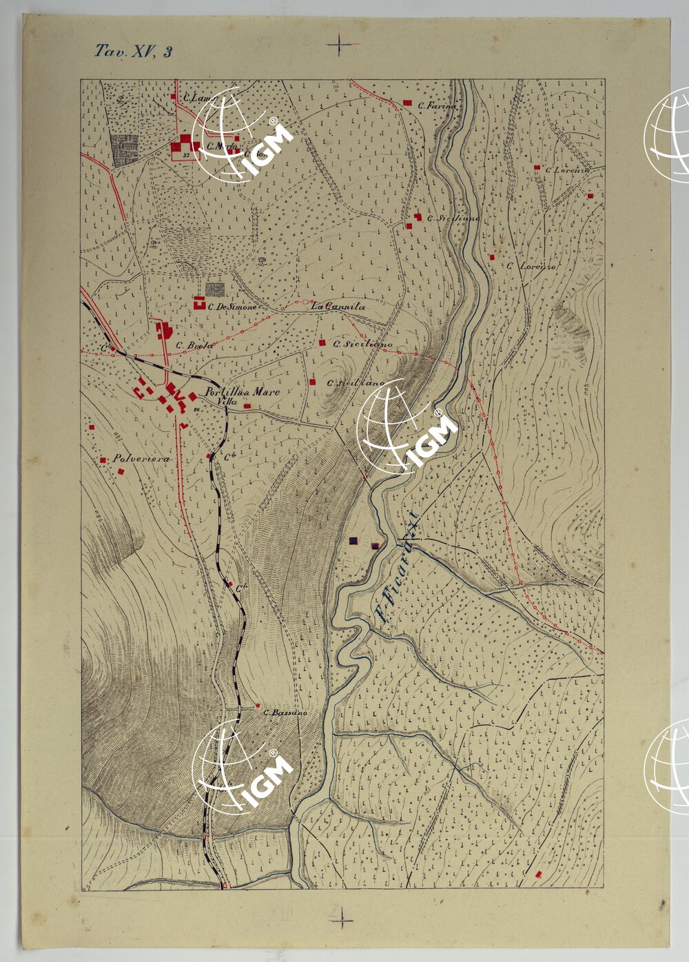 CARTA DEI DINTORNI DI PALERMO ALLA SCALA DI 1 A 10.000 PER LEMANOVRE SULLA CARTA ESEGUITA MEDIANTE INGRANDIMENTO GEOMETRICO DELLA CARTA AL 50.000, RIVEDUTA E COMPLETATA IN OGNI PARTE SUL TERRENO, CON STRUMENTI PER LEVATE SPEDITIVE – TAVOLA XV 3.