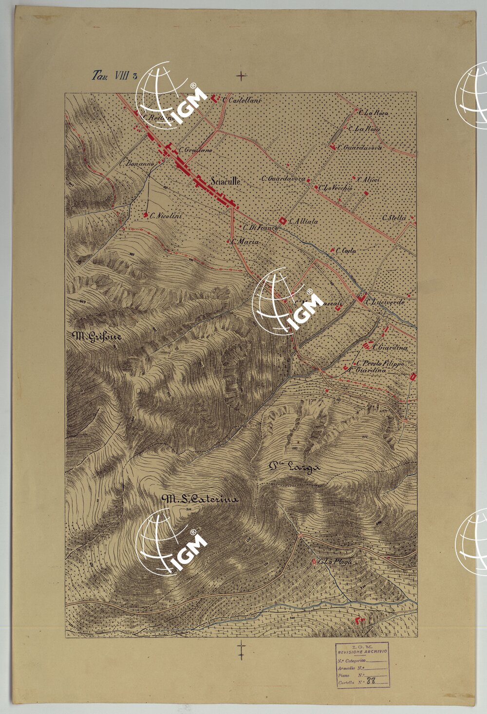 CARTA DEI DINTORNI DI PALERMO ALLA SCALA DI 1 A 10.000 PER LEMANOVRE SULLA CARTA ESEGUITA MEDIANTE INGRANDIMENTO GEOMETRICO DELLA CARTA AL 50.000, RIVEDUTA E COMPLETATA IN OGNI PARTE SUL TERRENO, CON STRUMENTI PER LEVATE SPEDITIVE – TAVOLA VIII 3.