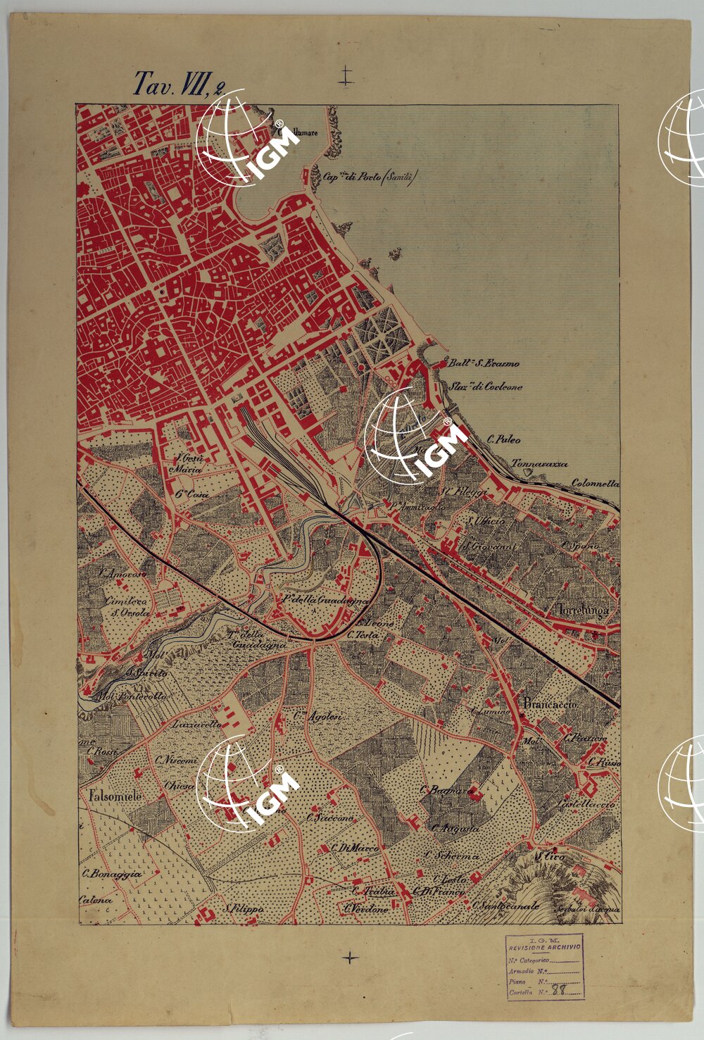 CARTA DEI DINTORNI DI PALERMO ALLA SCALA DI 1 A 10.000 PER LEMANOVRE SULLA CARTA ESEGUITA MEDIANTE INGRANDIMENTO GEOMETRICO DELLA CARTA AL 50.000, RIVEDUTA E COMPLETATA IN OGNI PARTE SUL TERRENO, CON STRUMENTI PER LEVATE SPEDITIVE – TAVOLA VII 2.