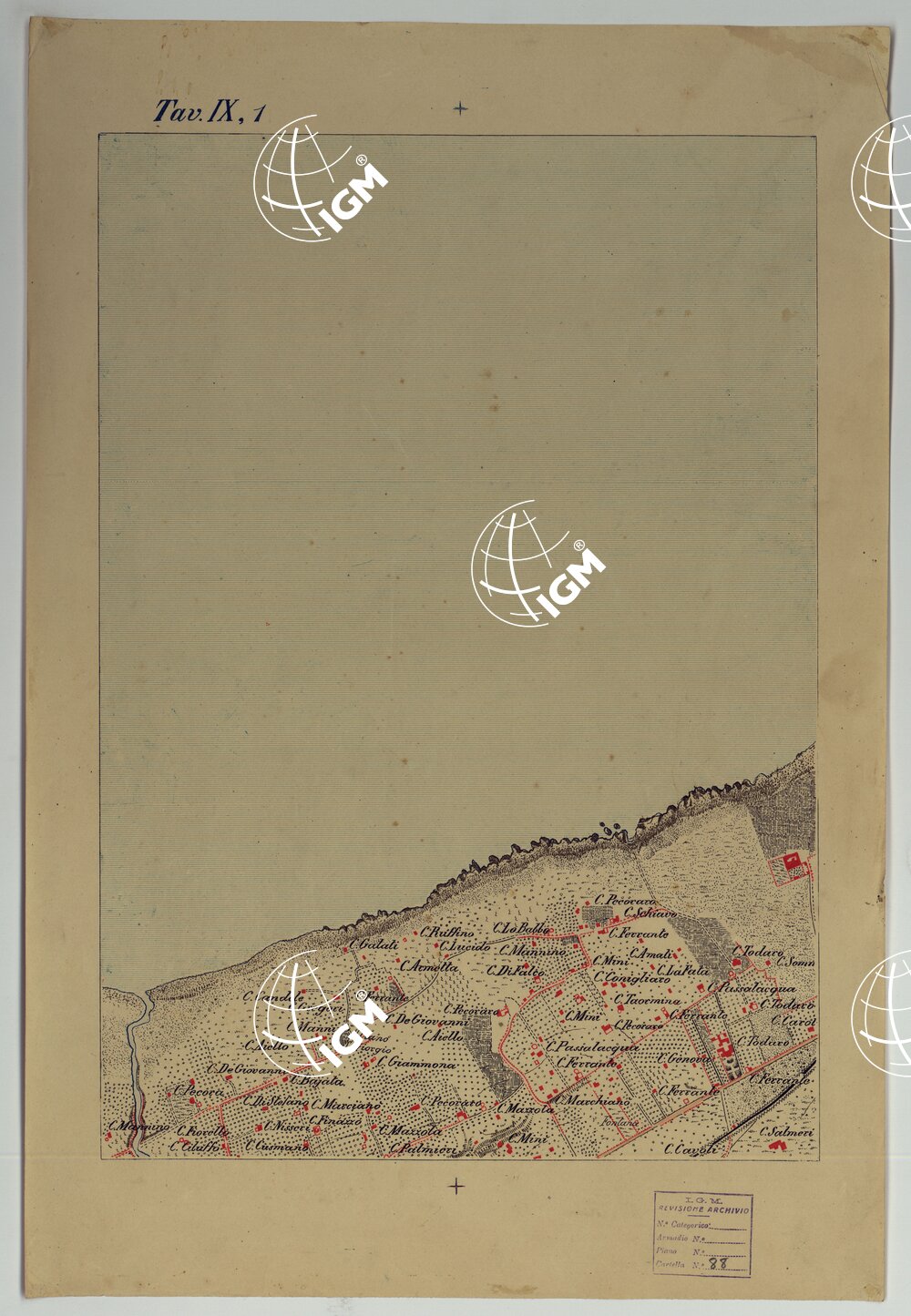 CARTA DEI DINTORNI DI PALERMO ALLA SCALA DI 1 A 10.000 PER LEMANOVRE SULLA CARTA ESEGUITA MEDIANTE INGRANDIMENTO GEOMETRICO DELLA CARTA AL 50.000, RIVEDUTA E COMPLETATA IN OGNI PARTE SUL TERRENO, CON STRUMENTI PER LEVATE SPEDITIVE – TAVOLA IX 1.