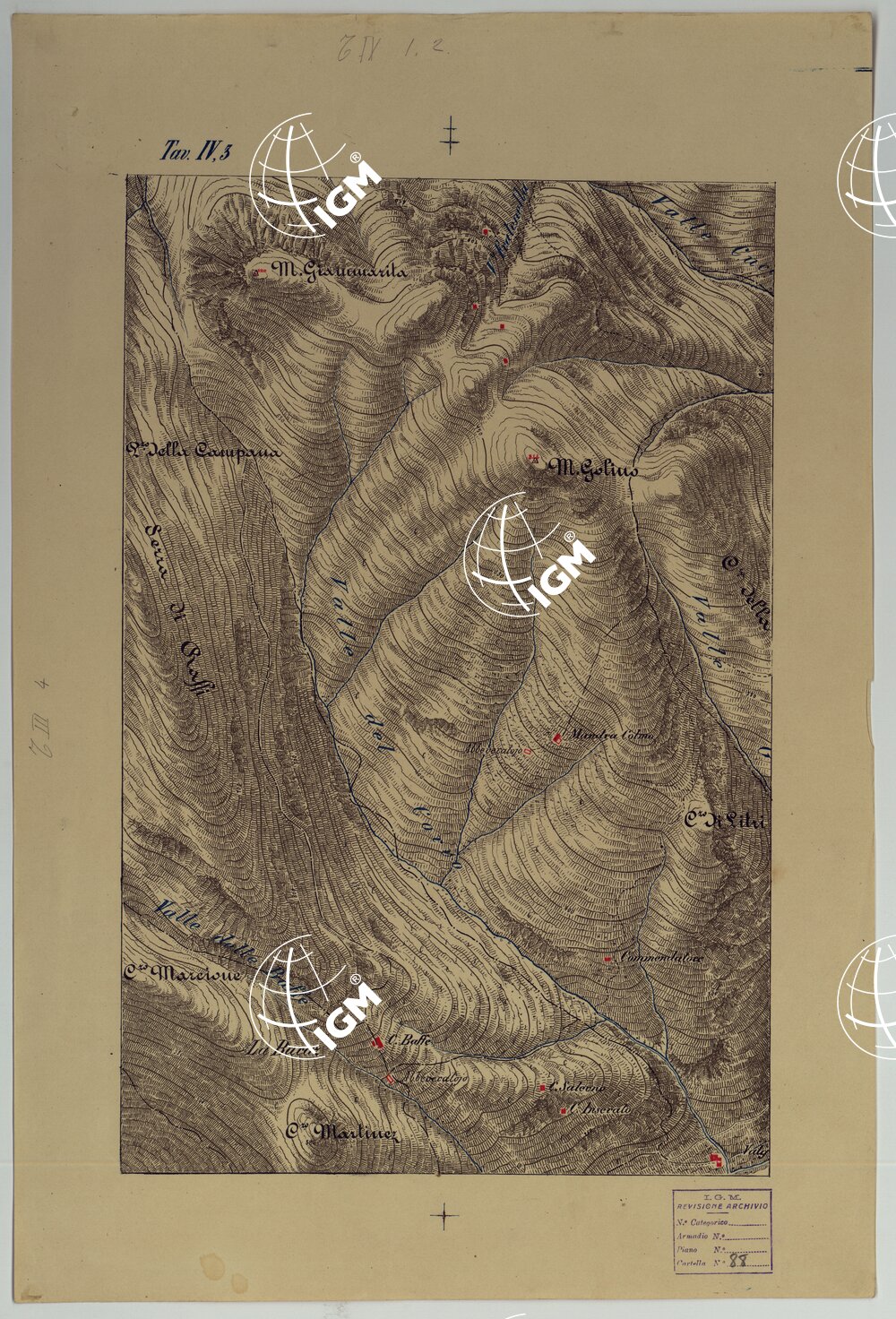 CARTA DEI DINTORNI DI PALERMO ALLA SCALA DI 1 A 10.000 PER LEMANOVRE SULLA CARTA ESEGUITA MEDIANTE INGRANDIMENTO GEOMETRICO DELLA CARTA AL 50.000, RIVEDUTA E COMPLETATA IN OGNI PARTE SUL TERRENO, CON STRUMENTI PER LEVATE SPEDITIVE – TAVOLA IV 3.