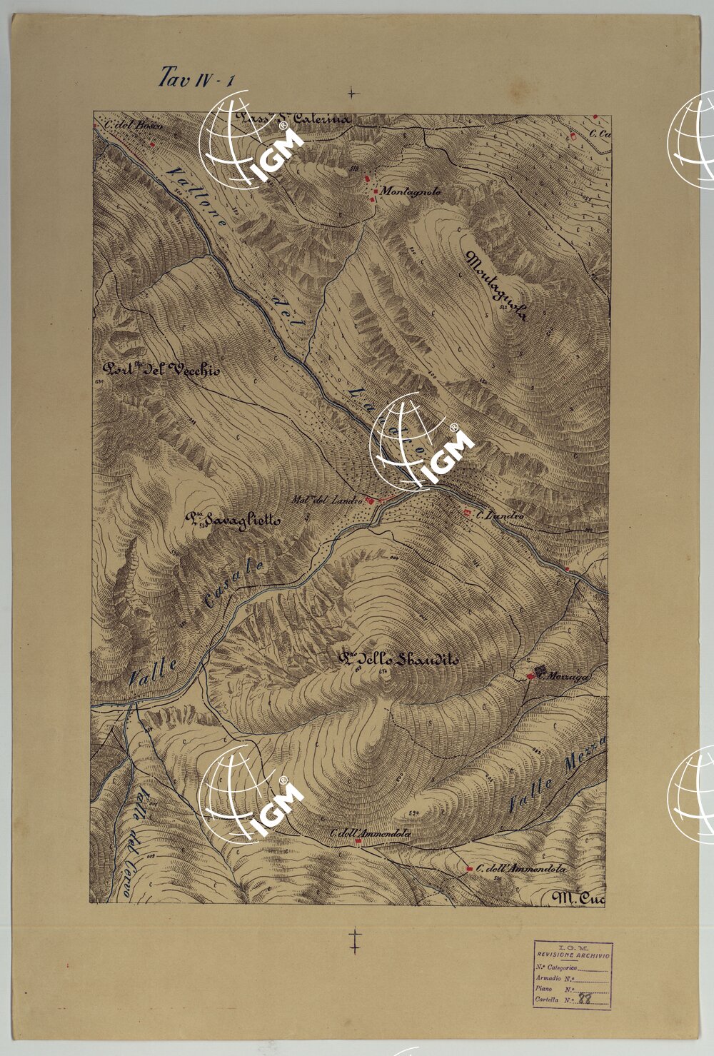 CARTA DEI DINTORNI DI PALERMO ALLA SCALA DI 1 A 10.000 PER LEMANOVRE SULLA CARTA ESEGUITA MEDIANTE INGRANDIMENTO GEOMETRICO DELLA CARTA AL 50.000, RIVEDUTA E COMPLETATA IN OGNI PARTE SUL TERRENO, CON STRUMENTI PER LEVATE SPEDITIVE – TAVOLA IV 1.