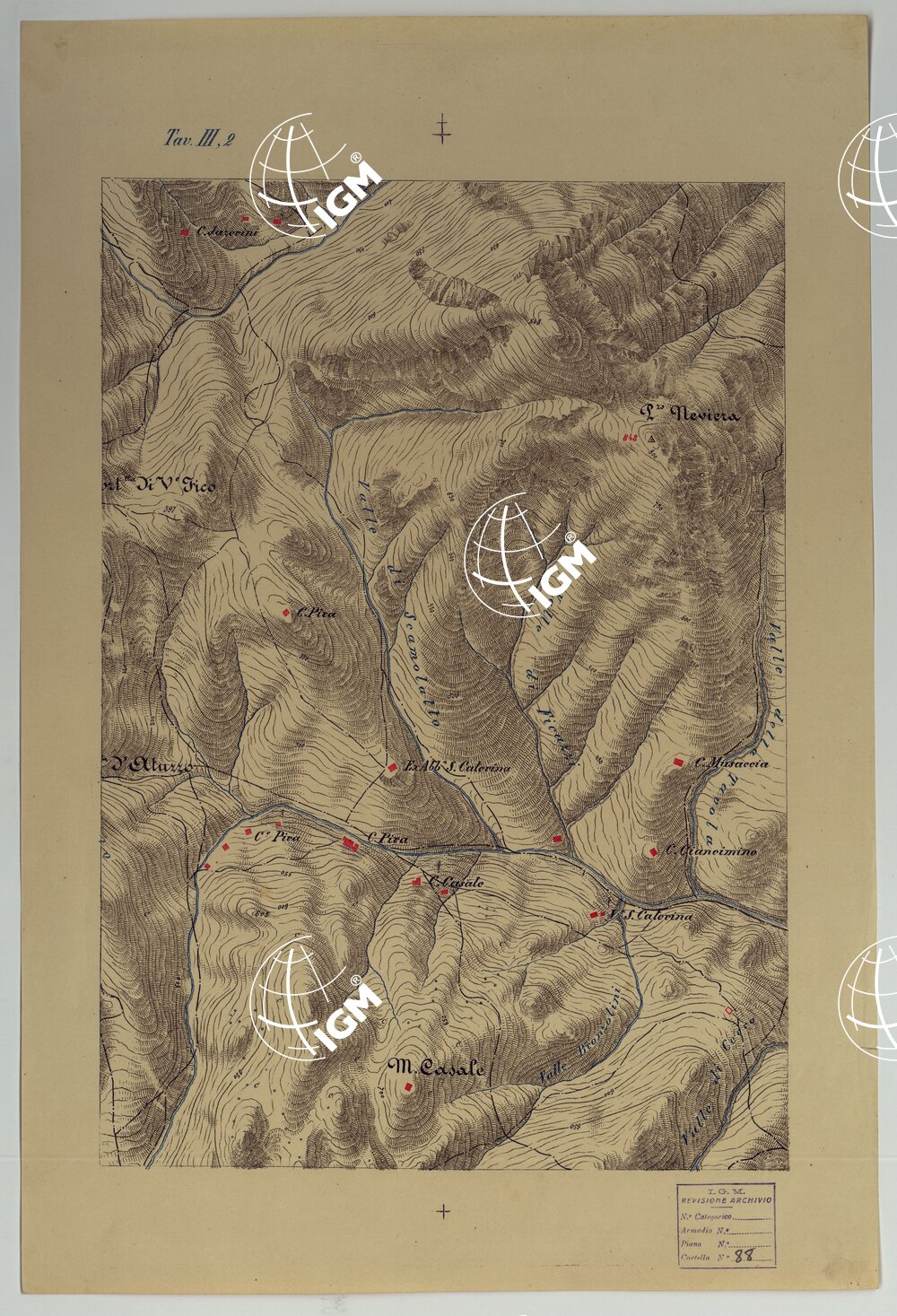 CARTA DEI DINTORNI DI PALERMO ALLA SCALA DI 1 A 10.000 PER LEMANOVRE SULLA CARTA ESEGUITA MEDIANTE INGRANDIMENTO GEOMETRICO DELLA CARTA AL 50.000, RIVEDUTA E COMPLETATA IN OGNI PARTE SUL TERRENO, CON STRUMENTI PER LAVATE SPEDITIVE – TAVOLA III 2.