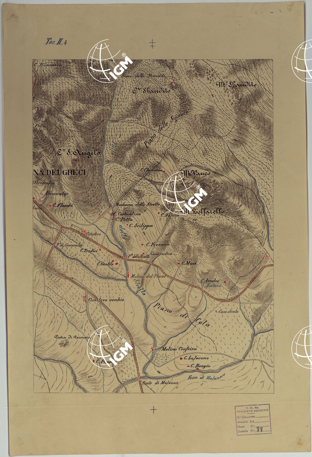 CARTA DEI DINTORNI DI PALERMO ALLA SCALA DI 1 A 10.000 PER LEMANOVRE SULLA CARTA ESEGUITA MEDIANTE INGRANDIMENTO GEOMETRICO DELLA CARTA AL 50.000, RIVEDUTA E COMPLETATA IN OGNI PARTE SUL TERRENO, CON STRUMENTI PER LEVATE SPEDITIVE – TAVOLA II 4.