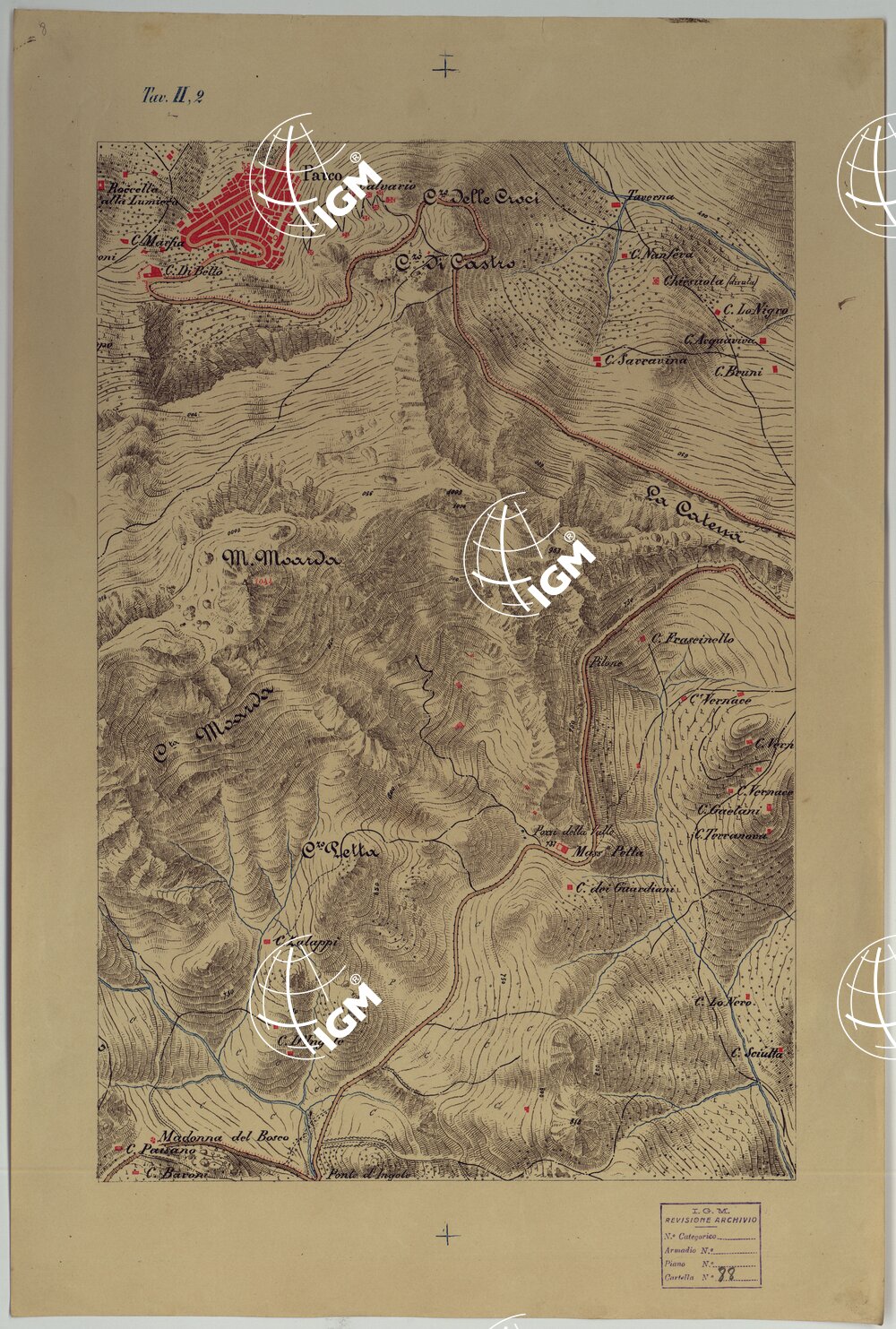 CARTA DEI DINTORNI DI PALERMO ALLA SCALA DI 1 A 10.000 PER LEMANOVRE SULLA CARTA ESEGUITA MEDIANTE INGRANDIMENTO GEOMETRICO DELLA CARTA AL 50.000, RIVEDUTA E COMPLETATA IN OGNI PARTE SUL TERRENO, CON STRUMENTI PER LEVATE SPEDITIVE – TAVOLA II 2.